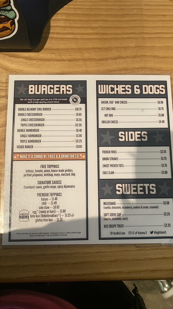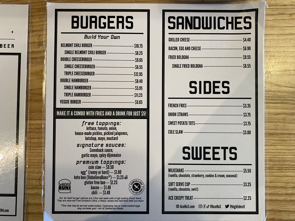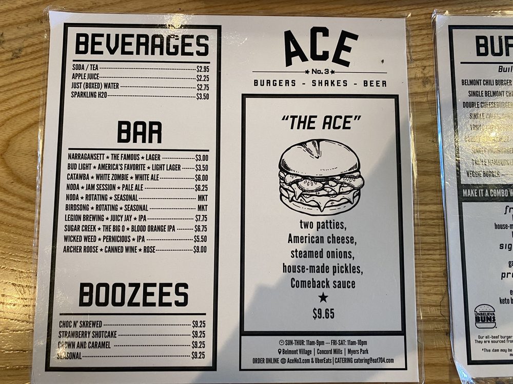 Ace No 3 - Belmont Village Menu (2025 Update)