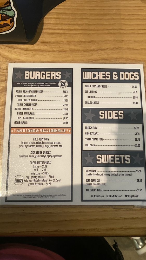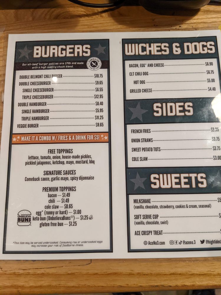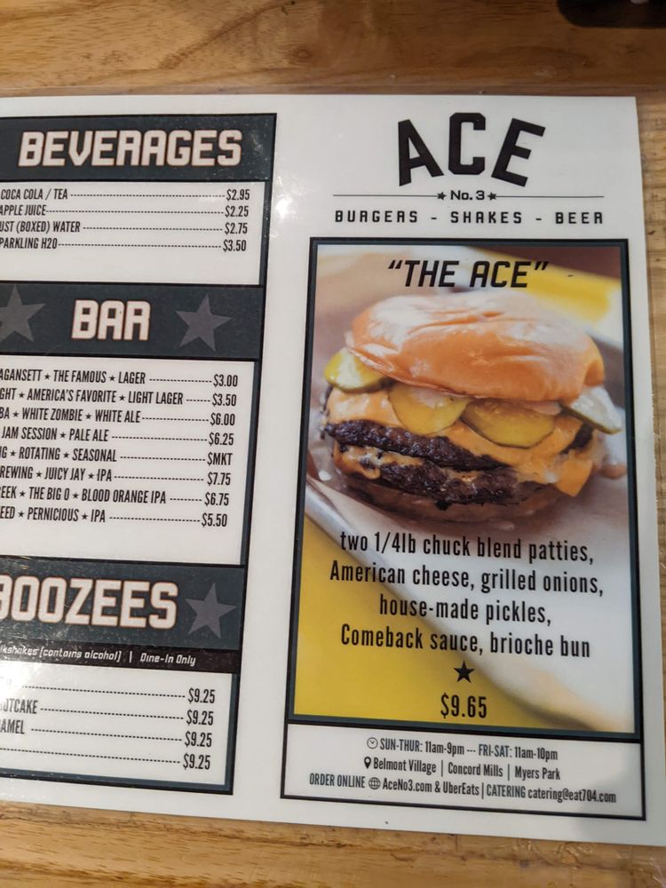 Welcome to Ace No 3 - Belmont Village, a burger haven located in Charlotte, NC. This trendy yet casual spot offers a wide range of options for both meat lovers and vegetarians. The juicy Ace burger has received rave reviews for its flavor and satisfaction factor, along with fresh and crispy fries. The cookies and cream shake is a must-try dessert option. Customers praise the quick service and outdoor seating area, making it a great spot for lunch, dinner, or even dessert. The Ace's unique sauce adds an extra layer of flavor to their burgers. Offering plastic-free packaging and a variety of payment options, Ace No 3 - Belmont Village ensures a satisfying dining experience for all burger enthusiasts. Don't miss out on this gem for your next burger craving!